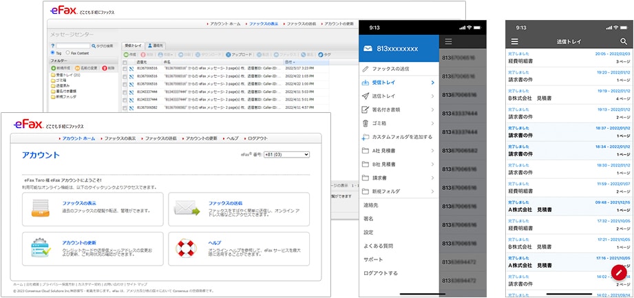 ※スマートフォンアプリのご利用には、eFaxアカウントが必要です。